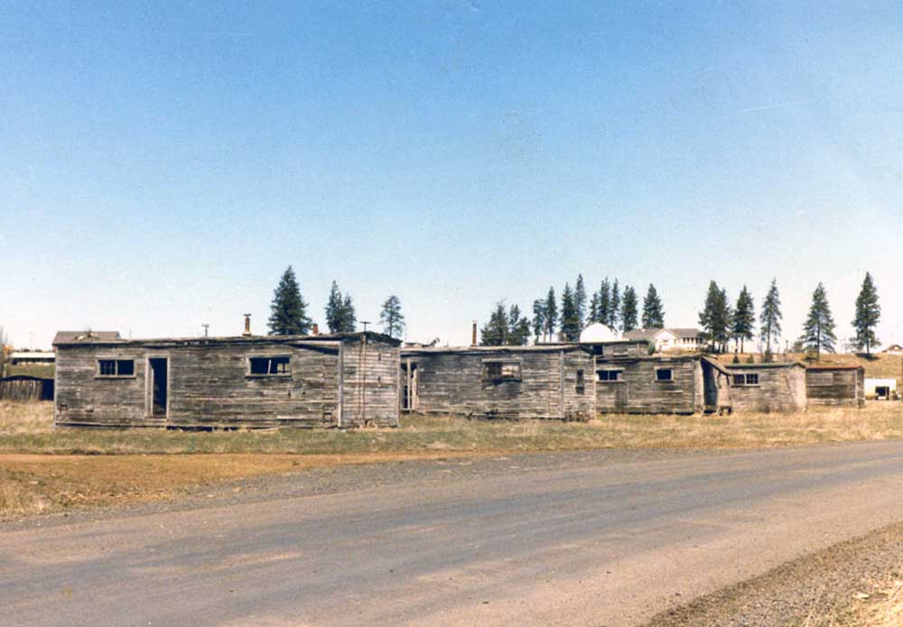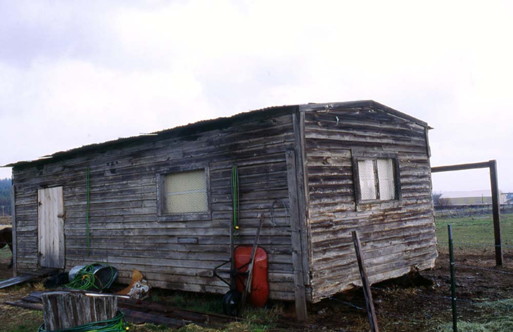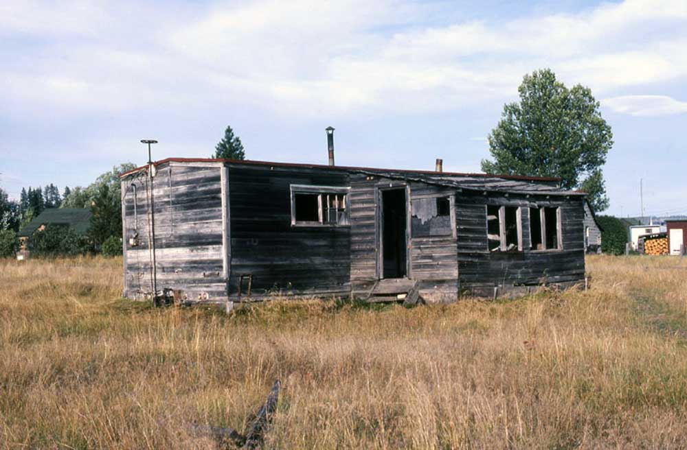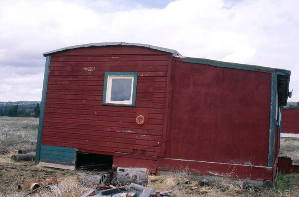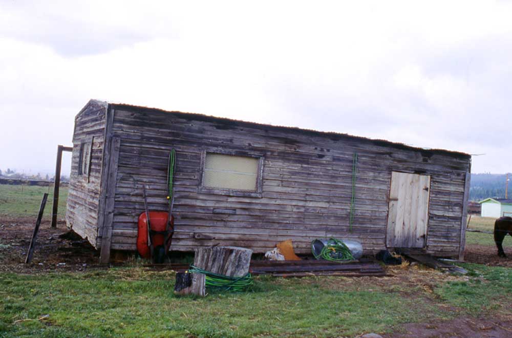 Sometime after the Mt. Emily Lumber Company closed in 1955 somebody trucked at least four camp cars and several skid shacks several dozen miles west to the small town of Ukiah, Oregon, where they were used for several decades as housing. John Henderson captured these images of the various bodies in Ukiah in the middle 1990s, shortly before they were demolished. |