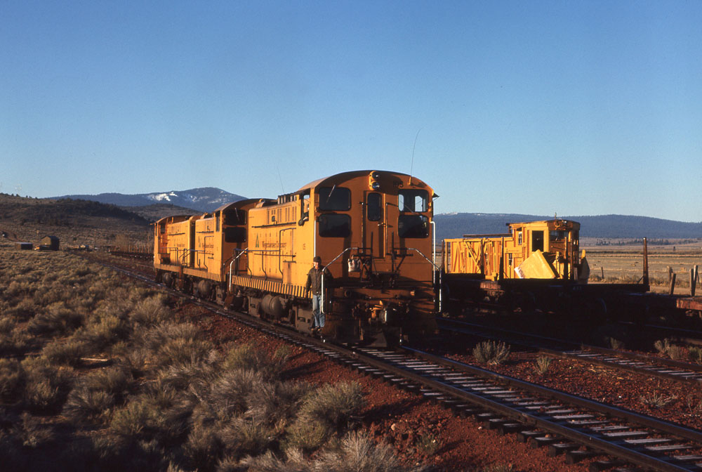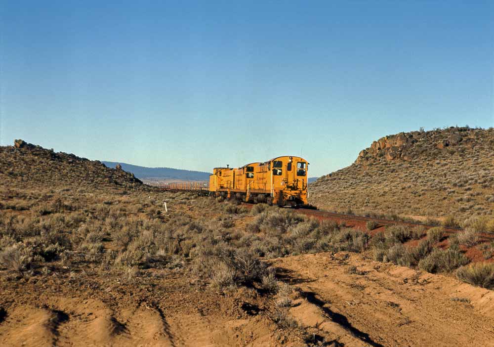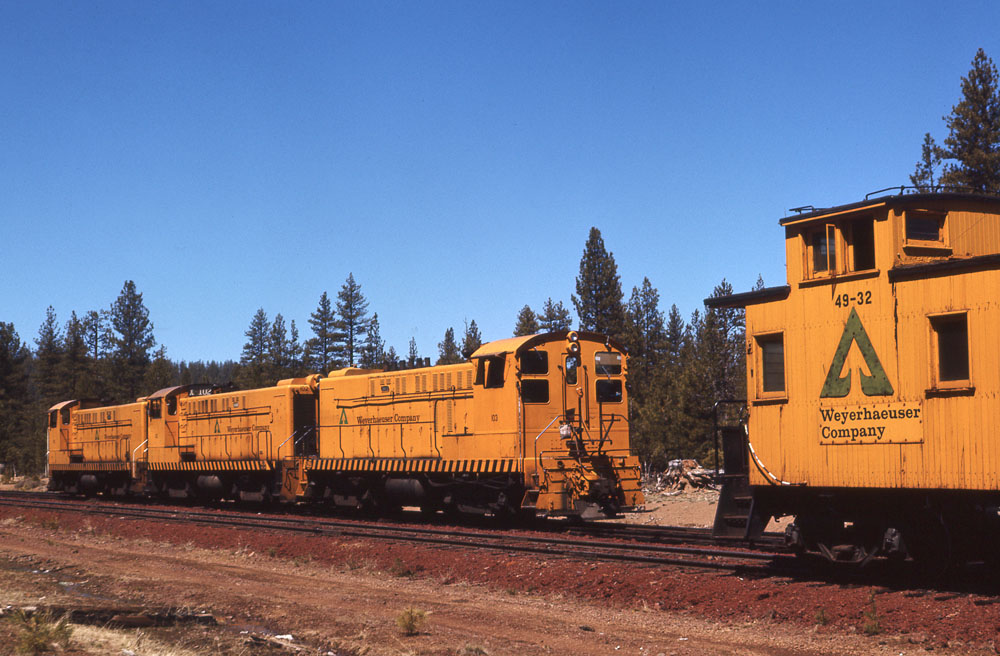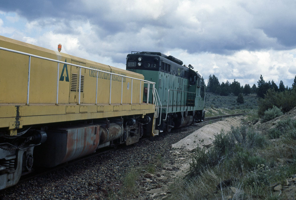 Weyerheauser #311 and #312 spliced by the two OC&E slugs working in the Sycan yard.