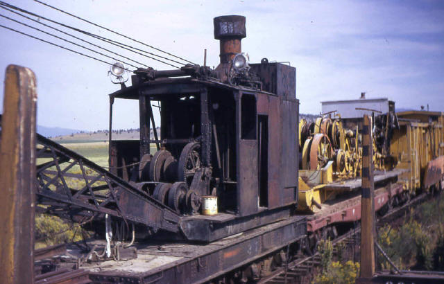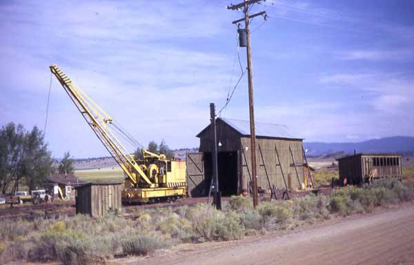By the 1950's the timber company had this Orton crane, purchased used from the United States Navy. This crane was U.S. Navy #84-00305, built around 1940. It is seen here in Sycan. Photo by and courtesy of Jerry Lamper. |