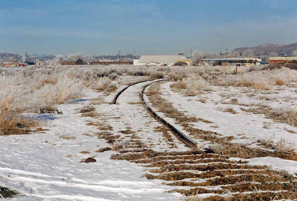 The old yard tracks looking west. The Southern Pacific freight yards can be seen in the distance. |
