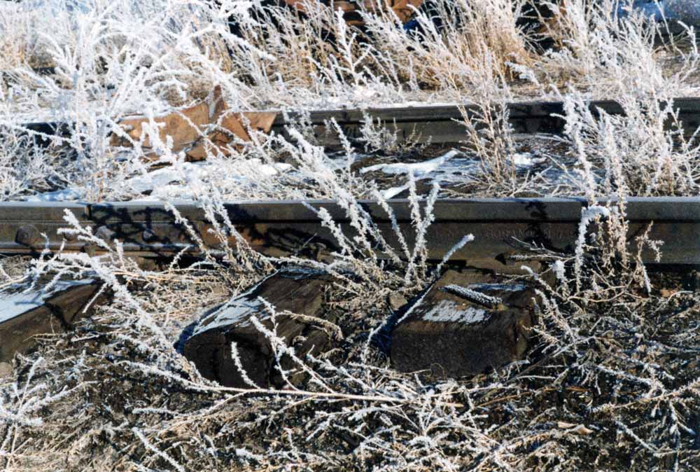 He then joined his family on a quick trip from the family home near Burney, CA up into southern Oregon. The family stayed one night in a hotel directly adjacent to the site of the Oregon California & Eastern yards in Klamath Falls. Parked on a short remnant of track directly behind the hotel were a couple pieces of former OC&E equipment owned by the Great Western Railroad Museum. The equipment consisted of Baldwin DS-4-4-750 #101, two modern skeleton log cars, an ex-BN coach, and ex-OC&E caboose #2006. These photos were taken by the author of this website in the morning. The last log train over the OC&E had run a little under four years before, and the rails had been lifted the previous year. |