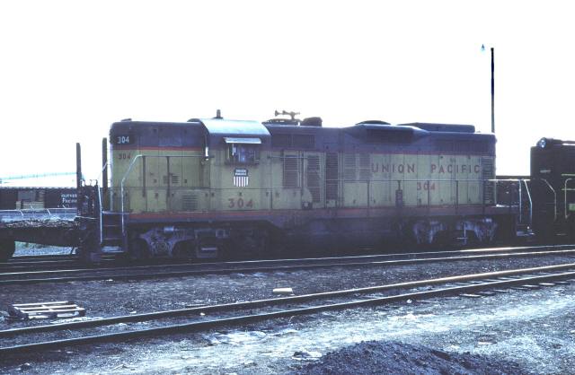Union Pacific "Omaha GP-20" (a GP-9 re-built to GP-20 specifications) #304 working with one of the Baldwin RS-12's in Klamath Falls in 1978 or 1979. Dan Haneckow photo. |