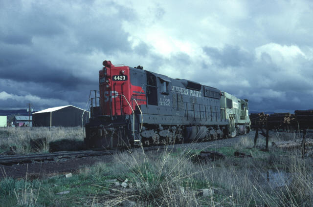 SP SD-9 #4423 coupled to one of the M-K's in Klamath Falls in April 1978. Dan Haneckow photo. |