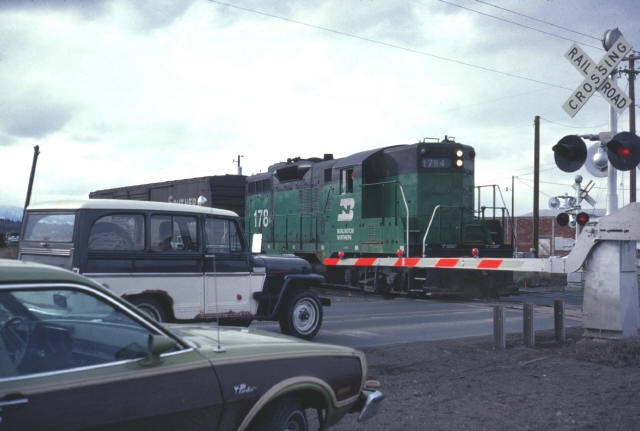 BN GP-9 #1774 coupled to a M-K in Klamath Falls on 4 February 1978. Dan Haneckow photo. |