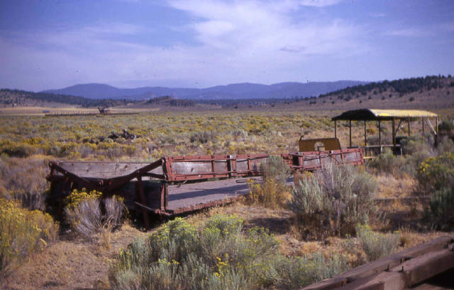 The remains of an old side dump hopper in the Sycan shops in 1973. Jerry Lamper photo, used with permission. |