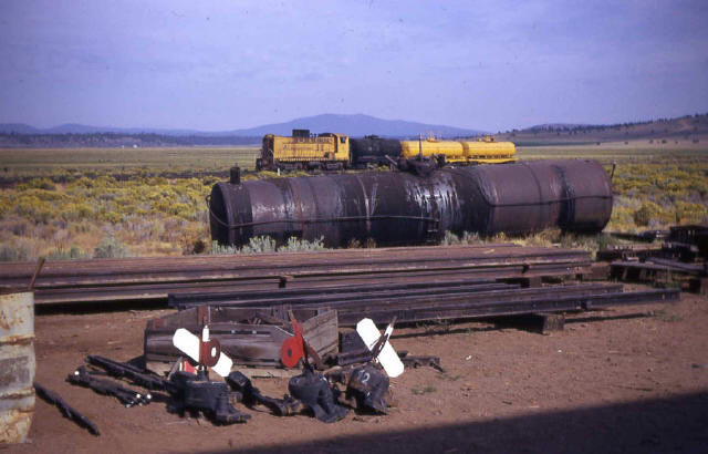 A former tank car body in use as a storage tank in the Sycan yards. Photo by and courtesy of Jerry Lamper. |