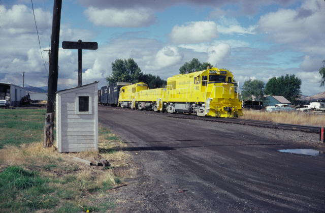 Oregon California & Eastern #7602 leading a freight through Hagar in 1980. Dan Haneckow photo. |