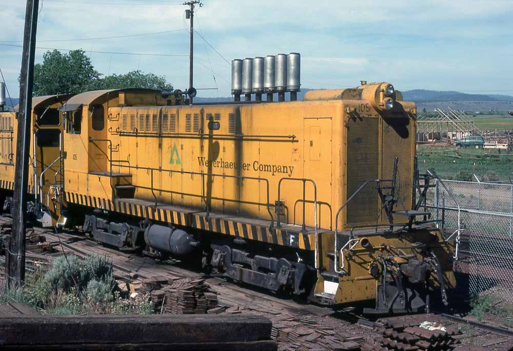 Weyerhaeuser #105 at Klamath Falls on 15 June 1976. Photo by Dan Haneckow. |