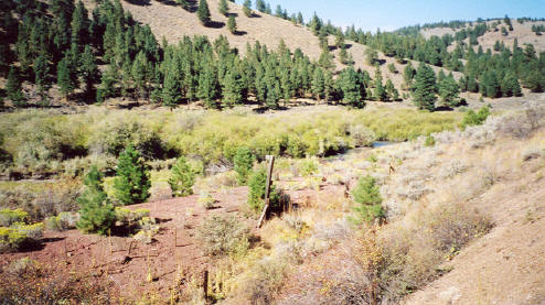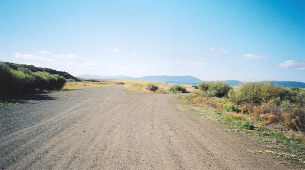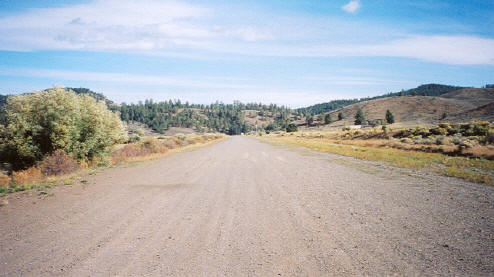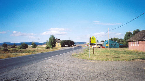 Looking north up the Highway 395 through Seneca. The old shop complex and planing mill sites are off to the left. |