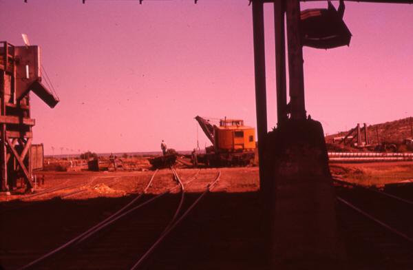The same process to unload cars was still in use in the early 1960's, although the crane was newer. Photo by and courtesy of Jerry Lamper. |