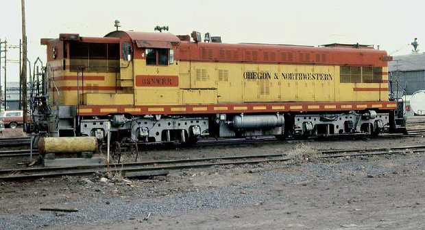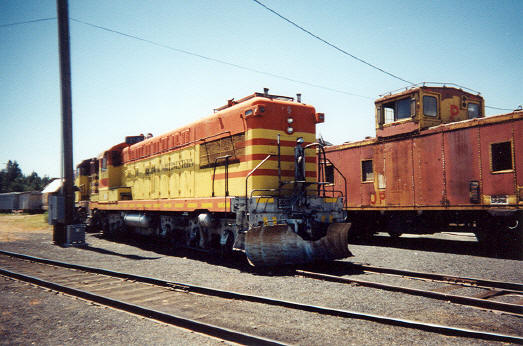 In 1969 Keith Ardinger arrived in Hines to find the newly arrived O&NW #4 sitting in front of the shop building, still wearing full McCloud River paint. The railroad's shop crew gave him some stencils and paint, and Keith painted lettering on the #4 before taking this picture. Used with permission. |