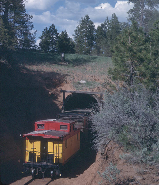 Caboose #300 about to enter the tunnel at Summit on 17 June 1982. Photo by and courtesy of Scott Anderson. |