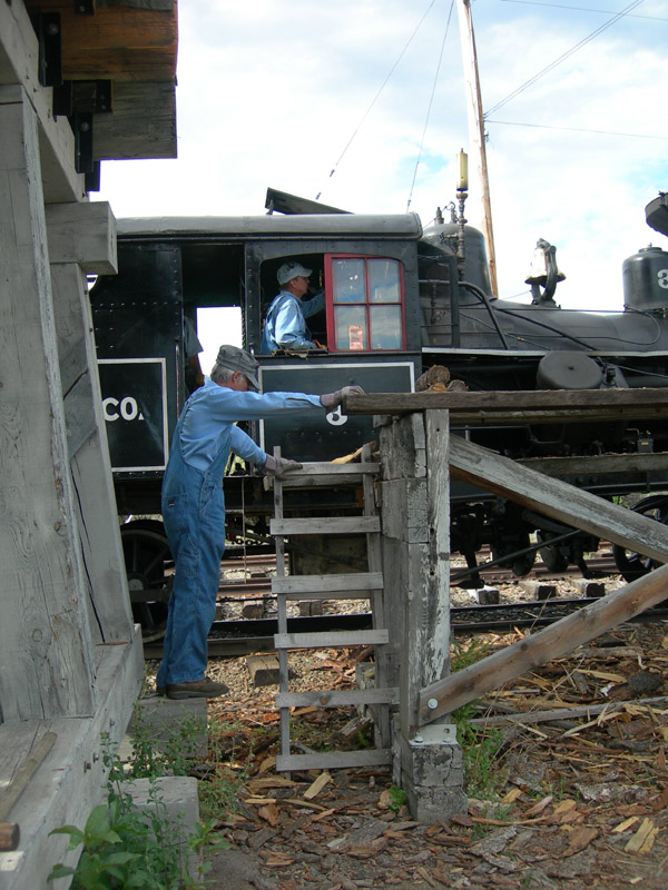 Sumpter Valley Railway volunteer crewmen preparing to service the #3.