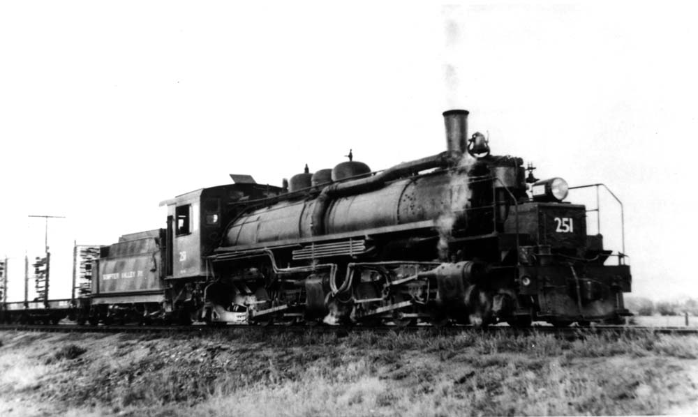 Sumpter Valley Railway #251 on the Sumpter Wye on 19 August 1946. John T. Labbe Collection of Logging and Railroad Photographs, 1892-2010, Washington State Archives, Digital Archives, http://www.digitalarchives.wa.gov.