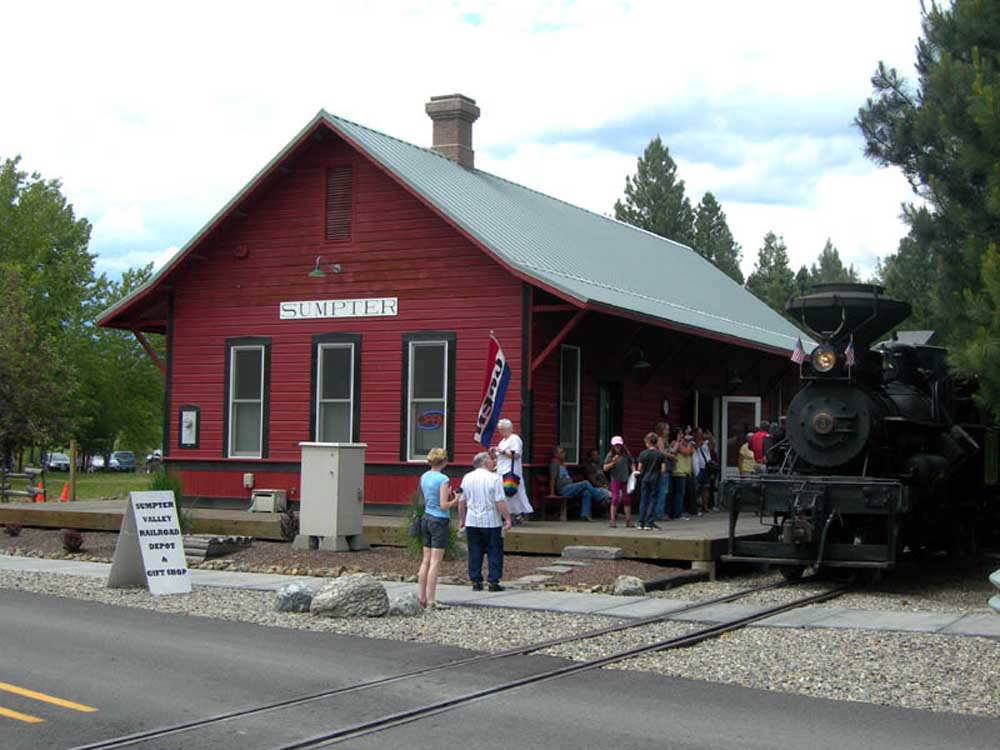 a certain amount of new construction. The railroad currently maintains weekend and holiday operations through most of the spring, summer, and early fall months. Trains currently operate twice each operating day from McEwan to Sumpter and back, with additional trips added during major holiday weekends. Sumpter is now a quiet tourist town, boasting about 250 residents and a good number of tourist venues that can be visited between train rides, including the partially restored gold dredge. Enough freight equipment is on hand to allow the group to run chartered photo freights and other specials for various parties. The group continues to acquire appropriate narrow gauge equipment as it becomes available. All operations and maintenance on the railroad continue to be done by an all-volunteer work force. The line is definately worth spending some time to see and ride, and several other traces of the Sumpter Valley Railway can still be found, including the grades south and west of Sumpter and the Prairie City depot, which has now been converted to a museum.
