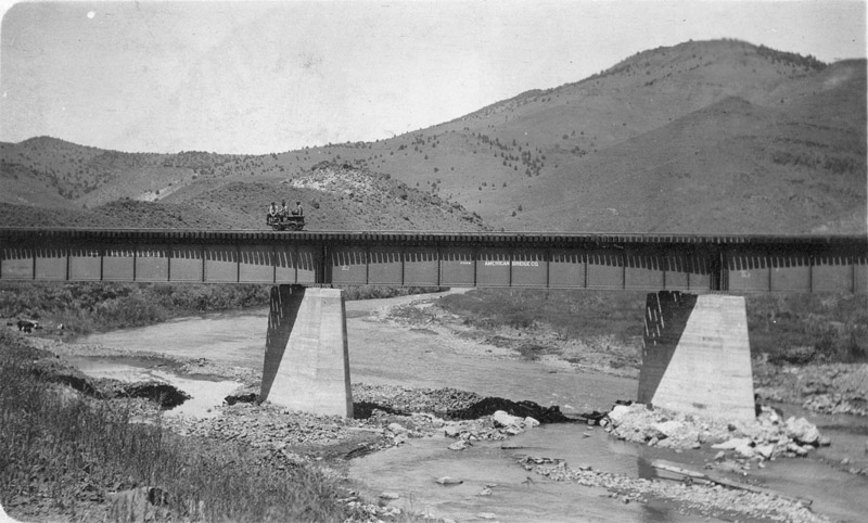 A speeder posed on the bridge over the Malheur River at Dunnean. |