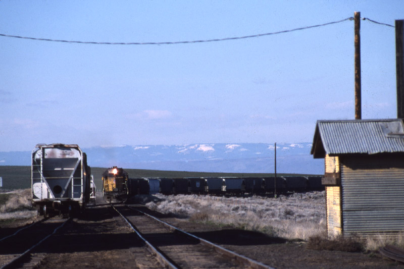 UP to close the Condon depot in 1975. Agricultural traffic, primarily grain, kept the trains running to Condon through the late 1980s. By the early 1990s operations over the line were non-existent, and UP applied to abandon the line. The only remaining shipper on the line, Condon Grain Growers, argued against the abandonment, stating that UP’s inability to guarantee a certain number of cars during the past two years prevented it from loading any cars. The ICC rejected this argument with the comment that a problematic car supply did not explain why nothing had been shipped over the railroad in 18 months. UP’s last run to Condon took place in late summer 1992, when some light engines made the long run up the branch to retrieve a cut of grain hoppers ordered but never loaded by Condon Grain Growers. The ICC granted permission to abandon the line in September 1992, and the rails were removed in 1993. A little over eleven miles of the branch remains in place today, from Arlington to the 2,000 acre Gilliam County Landfill. The landfill receives trash by rail from major metropolitan areas up and down the west coast, and that traffic keeps operations over the remnant of the line healthy. Since 2003 UP has leased this line to Watco's Palouse River & Coulee City Railroad. |