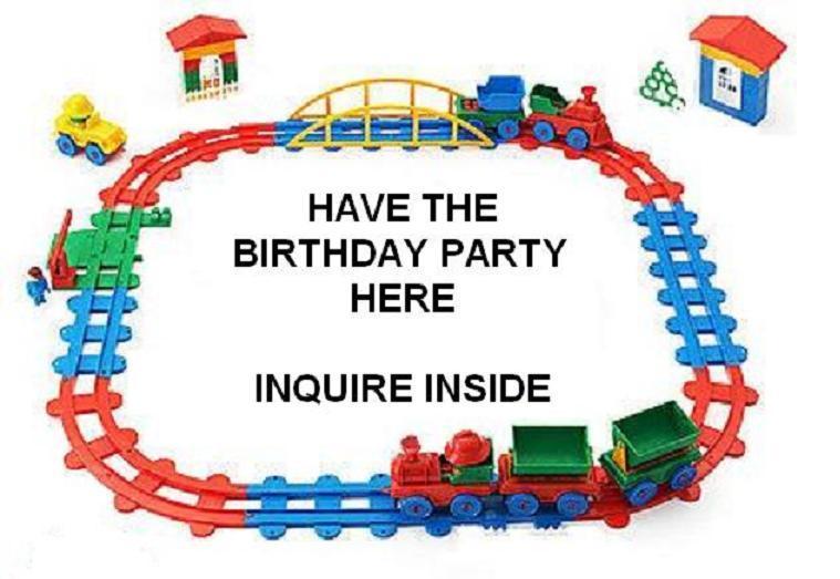 Birthday Party The Houston Tinplate Operators Society makes our club space available for birthday parties, scouting visits and other group-type outings during times when we are not open to the public. These events are generally scheduled at least two weeks in advance so as to insure our club has proper staffing. Watch the trains run on our four operating layouts, learn from our staff how the layouts operate, and let the kids have fun playing with the wooden layout or testing their skills finding objects on our layouts.