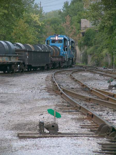 CSX has just pulled steel coils from Battlefield Yard and is pushing them across the river to Clark Yard