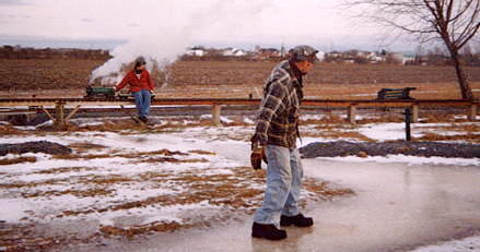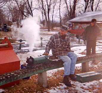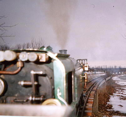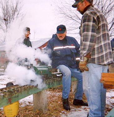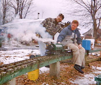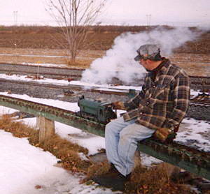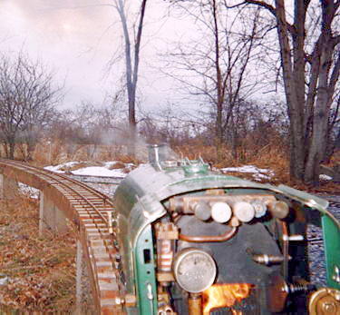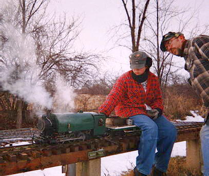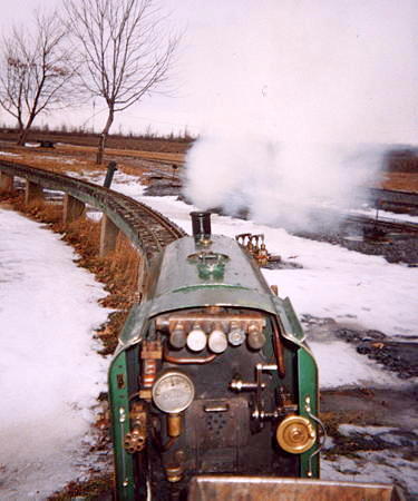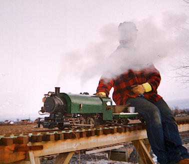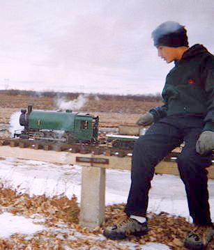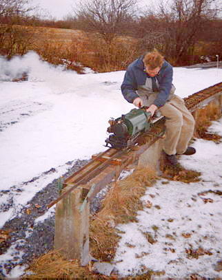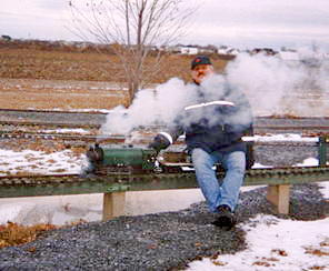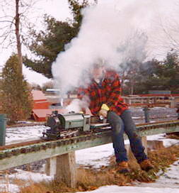 ...and then he is on his way to a great day of fun. One of the greatest joys of Live Steam in the winter (after watching your buddy's nose turn blue and fall off) is the steam effects from condensation.