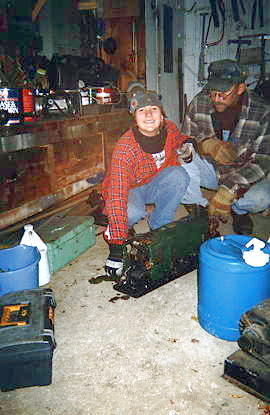 Jimbo and Elizabeth prepare our steed in the clubhouse - Elizabeth's 0-6-0T "The Pickle Barrel." It was built by her great-grandfather Jim Turnbull circa 1950, and over a half-century later, it still rises to every call.