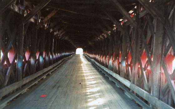 Why were they covered? It certainly was not for the romance. The timbers, if exposed to the weather, would quickly rot, and 4x12s are still expensive. By covering them, the sheathing could rot to the point of disappearing without affecting the strength of the bridge. Horses also preferred going through covered bridges - it felt just like entering the barn!