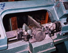 Step one is to cut off a blank. In this case, the outside diametre of the eccentric is 2 1/2", the strap diametre is 2", and the axle is 1".