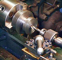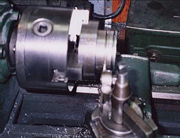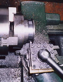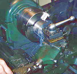 Turn down the boss on the side of the eccentric. If you take note of the micrometer collar reading when your first cut bites, and again when the cut goes all the way around, you will have an indication of the total throw of the eccentric. In my case, it is 0.662", which is an improvement over the 0.5" of the original cams. This number will be used in your calculations to make the valves.