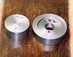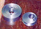 Photo 1 is for illustration only - it shows how the fourth bolthole aligns on the jig. We are looking at the opposing side. Photos 2 and 3 show mating surfaces. Note how the centred part of the jig requires four bolts while in use. Parting puts some nasty strains on this operation. The eccentric turning is simple drilling and facing - much less stress.