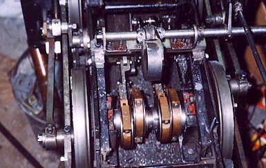 . . . I tell you it is quite a feeling to put the air to it and see the wheels spin, smooth as silk, and to hear the exhaust bark through the open pipe. Ideal valve setting accelerates the wheels as you notch up, and this one did just that.There have been a lot of learning experiences with this engine. Like that counterbalance on the weighshaft, top-centre of the photo above. Step one - make sure your propane bottle weighs more than the chunk of metal you want to silver-solder...