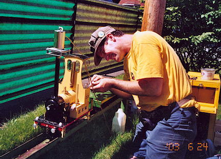 Tank locomotive, tender locomotive: A tank locomotive carries its' fuel and water supplies on the locomotive itself, in small tanks and a small bunker. In order to get a longer supply, the locomotive would pull a separate coal-and-water tender, directly behind, with these supplies. A saddle tank locomotive had the tanks arched over the top of the boiler, while a side tank tended to be more square, with the tanks sitting on the running boards. See the PICKLE BARREL (saddletanker) and HEW #33 (side tanker.)