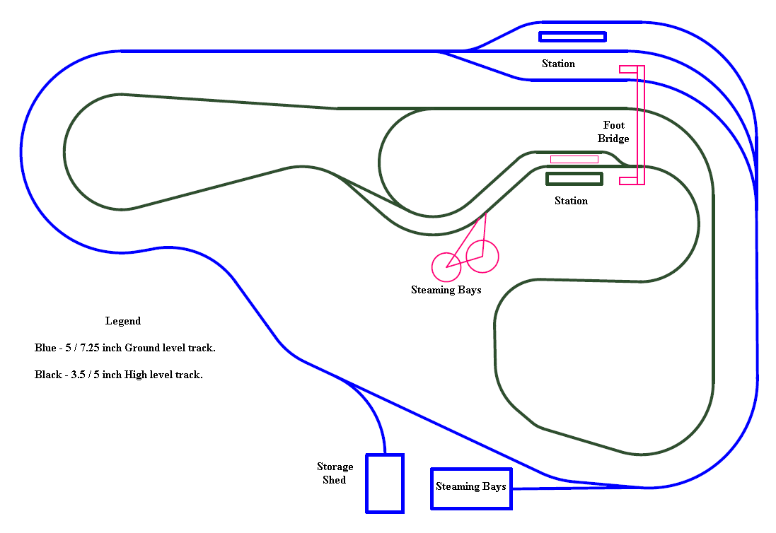 Our facilities include a dual gauge 3 ½" and 5" raised track of approx 590m, a ground level 5" and 7 ¼" track of approx 700m. <Layout> We have10 steaming bays for the raised loop and 10 elevated bays for the ground loop, with loading gantries for both loops. All bays have quick fit couplings for air and water. Charcoal, coal and anthracite are supplied along with steam oil and water, we also supply paraffin for cleaning down the loco after your run. The station has facilities for refreshments for visiting Live Steamers.