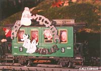 Caboose with witch on her broom taking up the rear