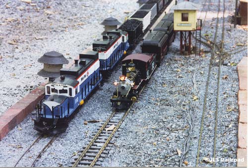 lower line; approximately a 5% grade. A lash-up of two LGB WP&Y