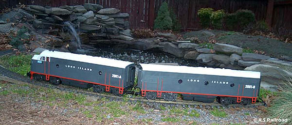 LGB was gracious enough to aid the Long Island Garden Railway Society in the creation of a club locomotive. This LGB F7 A and B unit were painstakingly painted in the color scheme of the Long Island Railroad. The Long Island Garden Railway Society would like to thank LGB for the beautifully crafted and painted locomotive.