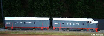 LGB was gracious enough to aid the Long Island Garden Railway Society in the creation of a club locomotive. This LGB F7 A and B unit were painstakingly painted in the color scheme of the Long Island Railroad. The Long Island Garden Railway Society would like to thank LGB for the beautifully crafted and painted locomotive.