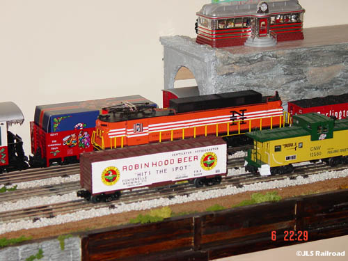 This was the first ever "Field Trip" of the JLS Railroad. We were invited by one of our members, Frank Bagnati, to his home for a viewing of his Railroad. The meeting and trip was a complete success. A nice change from the ordinary Operating Session on the JLS Railroad, we were treated to a look and discussion of Frank's meticulously created Railroad. Following that, we all viewed a Railroad video and discussed trains in general. I would just like to thank Frank and his wife Kathy for the wonderful meeting as well as all those delicious refreshments, thanks. The following photos were taken by Randy Knaub, enjoy...