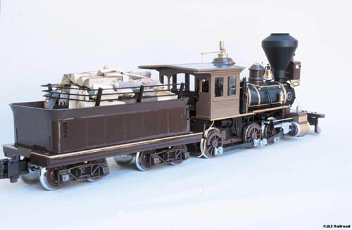 in 1:24 scale. The model utilizes an Aristocraft 2-8-0 chassis,