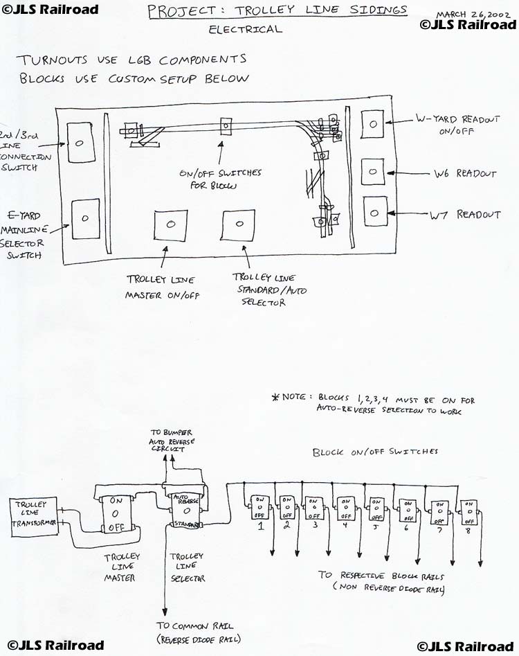 The new electrical schematic and detailed wiring diagram for the newly added Trolley Line trackage...