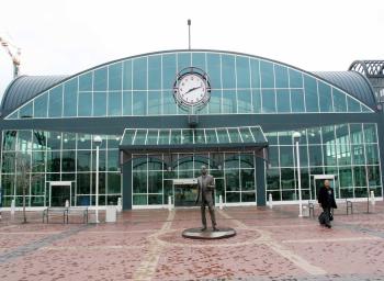 Click below to view each set of photos: Choo Choo! All aboard! Usually that would be the signal to play with grandpa's old Lionel train set or Santa's Christmas Express. This time, it beckoned a new kind of play - a train trip between Fullerton and Oakland, California on the Coast Starlight. Even the name conjures up visions of gazing into a motion picture of starlit beaches. What an adventure! Chuck and I were like two little children in anticipation as we raced down the freeway to the train station. "Are we there yet?" would have been the echo from past kid trips. The sluggish traffic made us grateful that our excitement had gotten us out the door early that morning. We arrived at the Fullerton Train Station in plenty of time to take photos, read the plaques proudly displayed around the station, do some people watching and forage for a parking space in the nearby parking structure. After capturing the obvious photos, I searched for the less obvious ones and ran up the stairs of the pedestrian overpass for a bird's eye view of the incoming trains. When I turned around to catch the opposite view I saw a man frantically flailing his arms in my direction. Upon closer examination, I perceived the frantic man to be my husband and traveling companion. Yikes! He was boarding the train. I knew that it couldn't be the right train but made an instant decision that I'd rather be on the wrong train with the right man than on the right train with the wrong man. The train's sound system rang in Chuck's ear: "Step in, sir. Do not hold the door open. This is not an elevator." I felt like a stunt double for a train scene. I grabbed the long handle by the open door and jumped inside with my camera in tow. Chuck directed me to the only available seat and I flopped down. The sprint from the pedestrian overpass could have qualified me for a marathon. Even though exhausted and out of breath, I mustered a smile in the direction of the woman sitting next to me. She glumly looked away muttering something about people like me making the train late. No wonder she was grumpy. I learned through annoyed looks and muffled complaints that she commuted four hours, five days a week on AMTRAK. If that weren't enough, she worked as an inner-city attorney. Surely, she would have to admit that riding on a fast train is better than driving in slow traffic. Union Station in Los Angeles was a welcome sight. Because we had mistakenly taken an earlier train, we had more than ample time to acquaint ourselves with the historical building that houses the train station. There was a TV commercial being filmed there so we were not allowed to wander through certain areas of the station. "People watching" is often a coveted hobby of photographers and I am no exception. I chatted with an Amish couple on a buying trip for their store in Pennsylvania and with a couple from London on a honeymoon "holiday." The last time I was a train passenger at Union Station was when I was a child and traveled solo between Salt Lake City, Utah and Los Angeles. Obviously, I am a throwback from another generation that was a safer, bygone era. Nevertheless it, too, was a great adventure and another story to write. Finally train number 14 arrived and the familiar "All Aboard" beckoned us to enter a new dimension of life onboard what seemed like a humongous "toy" train. Our steward, Donald, showed us to our room and brought us some chilled, refreshing cranberry juice. Boy did that hit the spot! We explored our new home-for-the-day and settled in. As the hours passed, the scenery became more breathtaking. Ocean scenes with swooping birds and sunlight dancing on the water were mesmerizing. For a few hours the foreground went racing by and the background kept our eyes at half-mast as we soaked in the tranquilizing effect of a long-awaited day of rest, punctuated with inter-active adventures. The Pacific Parlour Car and Sightseer Lounge were favorites on our jostled walk through the train. We enjoyed taking in the view from both sides of the train rather than from the one sided views of our neat little "sleepette" room. We chatted and nibbled cheese and crackers and devoured yummy sandwiches for lunch and enjoyed a sumptuous dinner. The train staff was helpful and pleasant. Meal times meant being seated directly across the table, toe to toe, with complete strangers. Some of those strangers were very strange. All were interesting. We mingled with a love-sick tanned laborer who gazed silently out the window, a cynical school teacher, a Native American college student and a friendly younger couple enjoying an "Alaska Airlines Rewards" trip. In every case, we were the ones to extend greetings and attempt to engage these "forced on friends" in conversation. We always try to leave people happier than we find them, if they will allow it. We met a camera shy conductor that had to be tricked into being photographed. How could such a handsome fellow be so fearful of the camera? Some train workers confided that this was one of the roughest rides they had ever experienced. Truly, the image stabilizer on my camera lens had trouble capturing still shots on a moving target! It was rocking and rolling all the way, not too unlike amusement park train rides meant to be somewhat frightening. There were many furrowed eyebrows as the train came to a stop at several unscheduled locations for "track repairs" or to let another train pass by. After the "repair" stops, we proceeded at "walking speed" for long periods of time. Such occasions no doubt contributed to the train being hours late arriving in Oakland. Instead of a suitable arrival time, those unexpected stops delayed our arrival at the Jack London Station in Oakland until after midnight. The short walk apparent on the Internet map stretched ahead of us like a spook show runway. Gangs of guys hung around dark corners and talked noisily outside a local tavern. Although we arrived on the same side of the street as our hotel, we bris