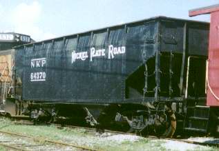 This is the hopper car. We use it to lay ballast. It was built in 1947 and first carried W&LE colors. Now dressed out as a Nickle Plate car, this piece of rolling stock is probably one of our most used pieces of freight equipment.