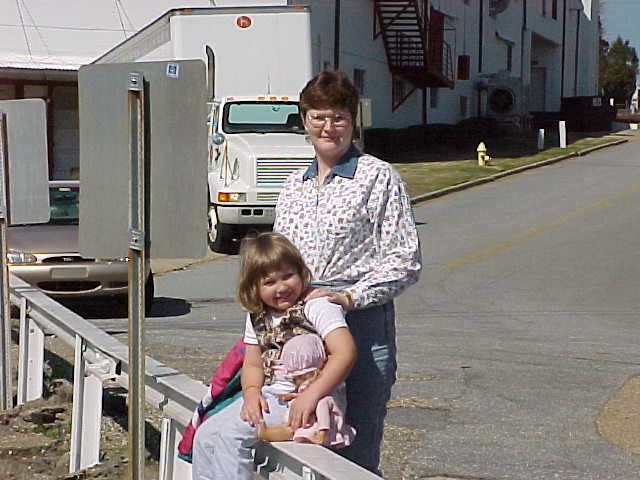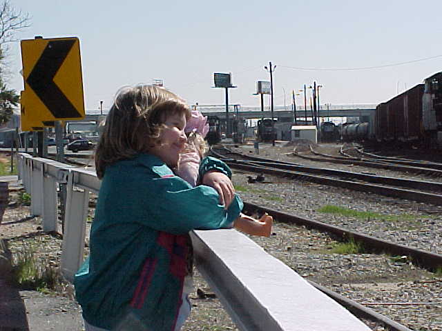 | Junior railfan (my daughter) watching trains with her dolly. She is 5 years old and has liked watching trains at least since she was two years old. | My wife and daughter like to accompany me on train-watching trips. Here they are at the edge of the NS yard in Columbus. |