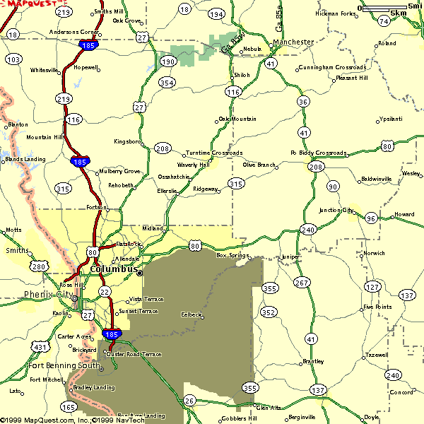 I found this map of Columbus, GA and the surrounding area on a travel site. It might might you to become oriented to the area as you look at these web pages. I don't think that this map shows the railroad lines. That map will come later.