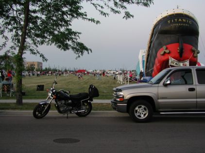 Several blocks south, an airslide enshrouded in a mockup of the Titanic amused kids too energetic to sit with their parents.