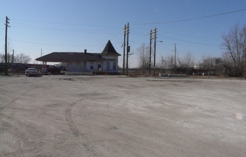 The former control center for Centralized Traffic Control of the two C&M subdivision main tracks and passenger shelter for one hundred years is almost gone, however. CP Rail has set June 1, 2009 as deadline for arranging its transfer to a new location or removal by bulldozer. As seen in this mid-March photo, the silhouette so widely respected among village resdents and thousands more train fans remains. But the interior appointments and weather worthiness of the old building have suffered too many years of neglect before mid-1990s attempts to slow, even reverse, its gradual decline.