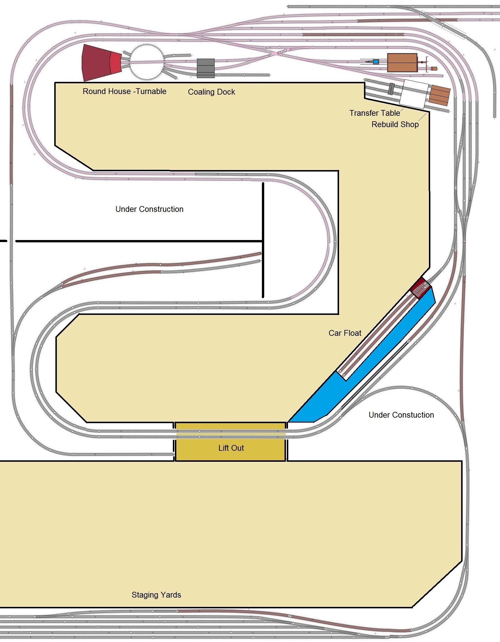 This layout is built in a 16' X 16' which was built just for the layout. With a staging yard in a connecting 6' x 16' room. In the first