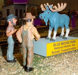 ”You Bozo,” laughed Stumpy, “your dumb blue moose is just a statue!”