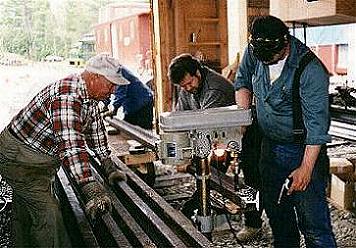 By that time the rail cutting crew had completed their job back in the shop. When the rails arrived the experienced crew decided which rail should go where, and we carried them and placed them on the ties. The rails were then bolted together with joint bars and the spiking process began again. By this time I was beginning to feel my age, and then some. Carrying a heavy pry bar, railroad ties, and rails are not the usual activities of a fourth grade teacher.