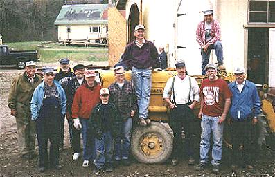 Speaking of our crew, the photo at right shows about half of our 25+ workers, including me, second from right in the front row. A disadvantage of being a photographer is that you’re not in too many pictures. But that’s outweighed by a big advantage; cameras are much lighter than pry bars, etc. After all, someone has to record the events, right?