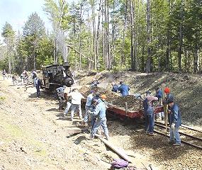 The goal for the weekend was to ballast 1,100 feet of track to reach the Humason Brook Trestle ~ we didn't quite make it. Still, the in-service track gives a great ride, and it will only get better.